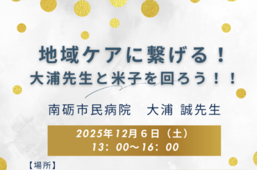 地域での医療って、診察室の外ではどんな風に広がっているんだろう? 今回は特別に、南砺市民病院 総合診療科 副部長の大浦誠先生をお招きして、 米子のまちを歩きながら「地域ケアの現場」を一緒に見て・感じて・語ります! 地域を…