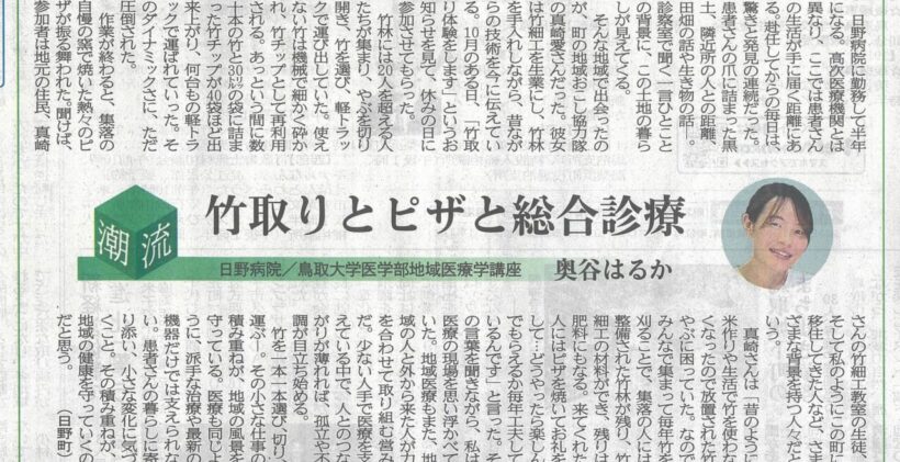2025年11月18日 日本海新聞17面 潮流 に掲載されました。 ~竹取りとピザと総合診療~