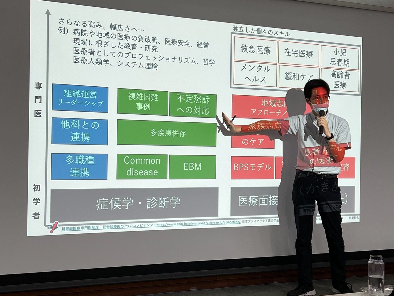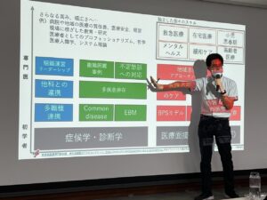 第1回となる5月8日のセミナーでは、紙本特命助教より「卒後キャリア(制度説明)」について講義が行われました。続く6月11日には、中井助教が「極論で語る総合診療〜総合診療医=スキルのない器用貧乏?」と題したセミナーを実施。さらに7月4日には、孫准教授が「『私とは何者か』論から考えるキャリア形成」と題して講義を行いました。