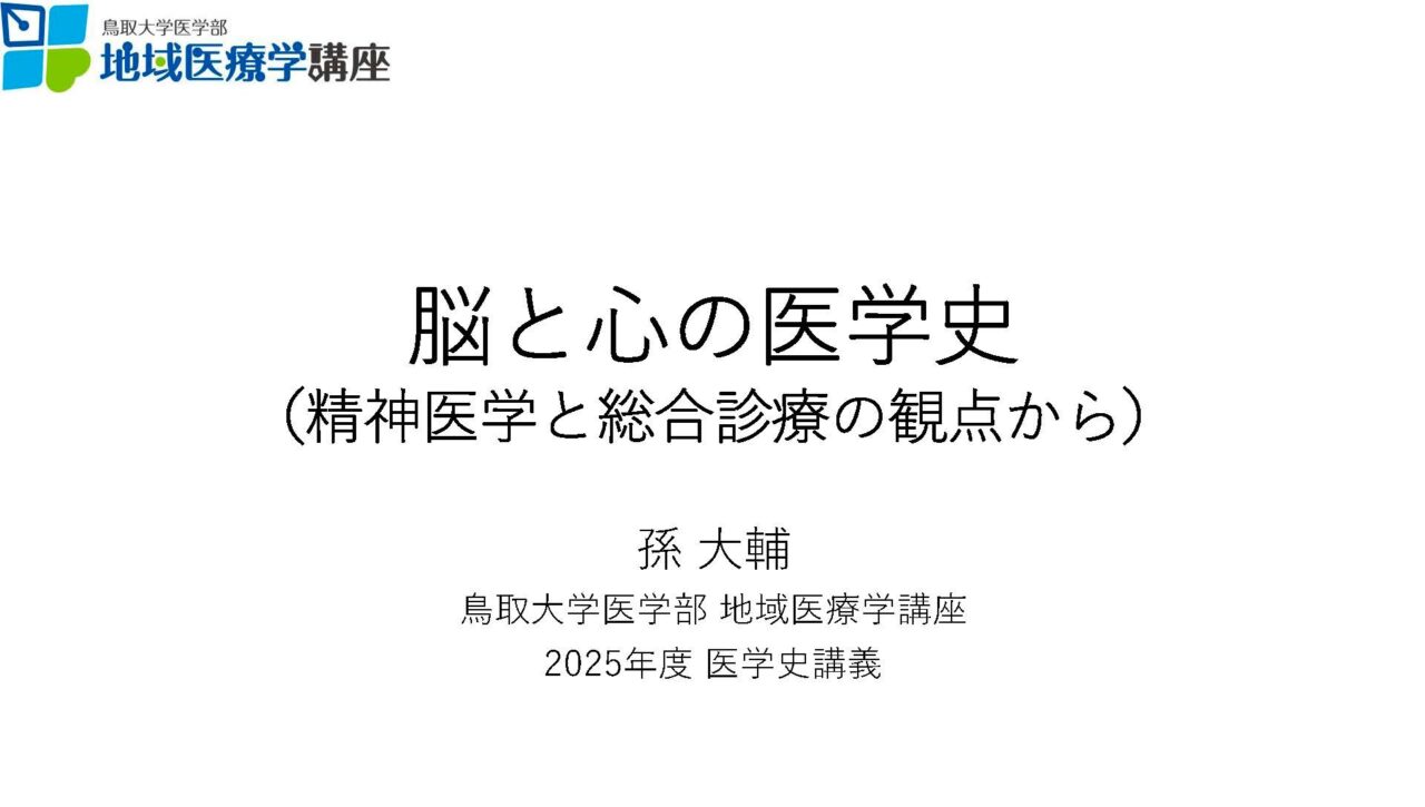 2025年度の医学史講義で、「脳と心の医学史—精神医学と総合診療の観点から」というテーマの授業を担当しました。