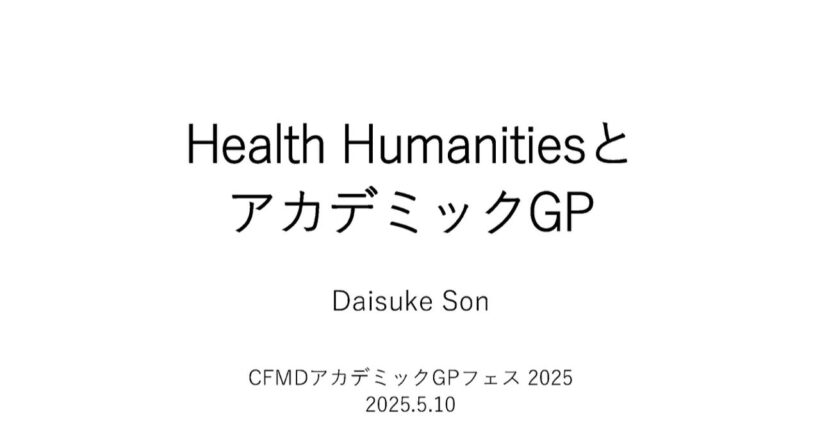2025年5月10日に開催されたオンラインイベント「CFMDアカデミックGPフェス」に登壇しました。本イベントは、東京で活躍されている家庭医のレジェンドであり、私の家庭医研修の恩師でもある藤沼康樹先生が主催されたもので、…
