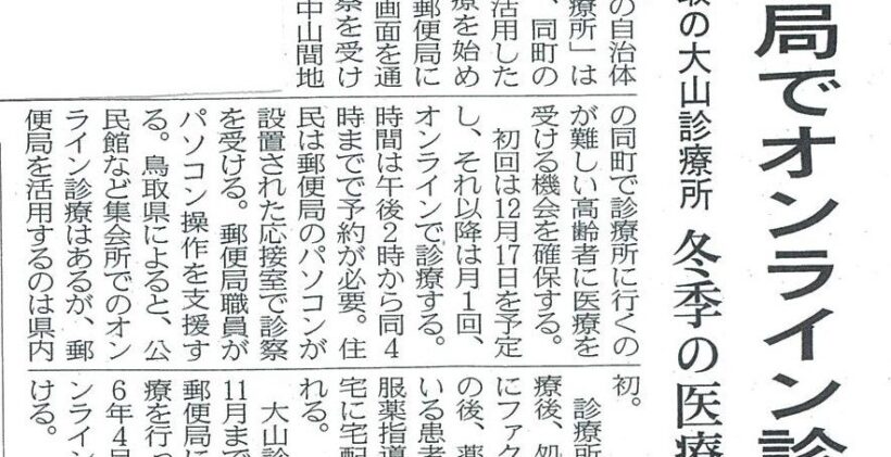 2025年10月1日 日本経済新聞 39面 大山寺郵便局でのオンライン診療についての記事が掲載されました。
