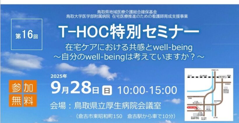 9月28日、倉吉市の鳥取県立厚生病院で開催された第16回T-HOC特別セミナーにて、講師を務めました。今回のテーマは「在宅ケアにおける共感とwell-being~自分のwell-beingは考えていますか?~」。午前中は…